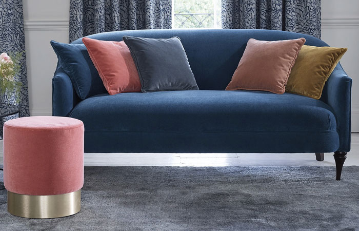 It’s all about being bold with colour this year, as our Design Colours for 2020 illustrates. For plain velvets, classic blue, mandarin, cassis, bright yellows and golds are the go to hues this season. For patterned velvet ikat, large graphic repeats, and contrasting tones with acid details on blousy botanicals are all the rage. Take that velvet chesterfield sofa to the next level with quirky, daring new look.