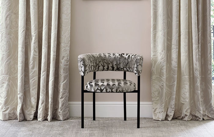 Although a dense material velvet can add an intense pastel freshness in the right shade and fabric, making it perfect for the coveted baby pink hues that are everywhere in 2020. This blush Cosmos Velvet in an antique finish provides an interesting colour hit, while the variation in texture keeps the scheme feeling light. Mix it with voiles in the same tone to create a graceful scheme that also feels sumptuous.