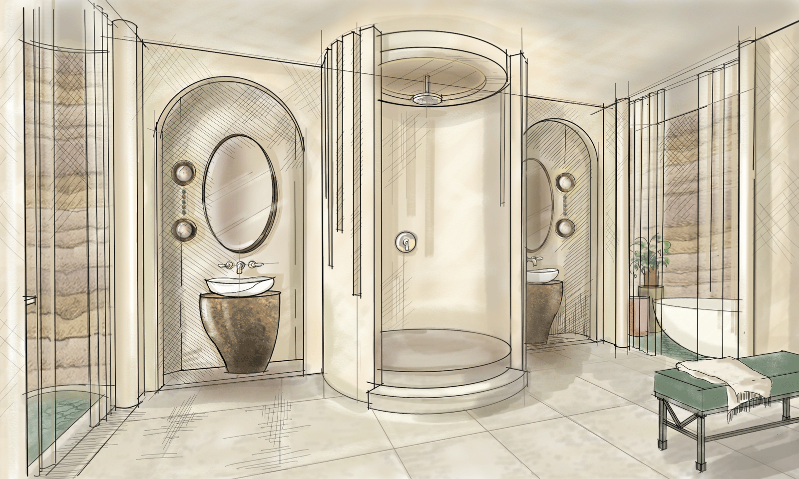 Reverie: Recalling cultural and historical stories, which bring meaning to the experience. Creating a feeling of being a traveller of the world, discovering another way of seeing the world. Inspired by traditional hammams, tactile materials such as plaster walls, intriguing floor pattern and artisanal furniture selections create a unique character.