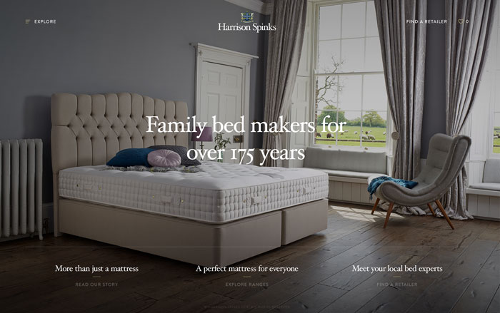 For the first time, the website unifies Harrison Spinks’ bed brands – Harrison, Somnus, and Spink & Edgar – all on one site.