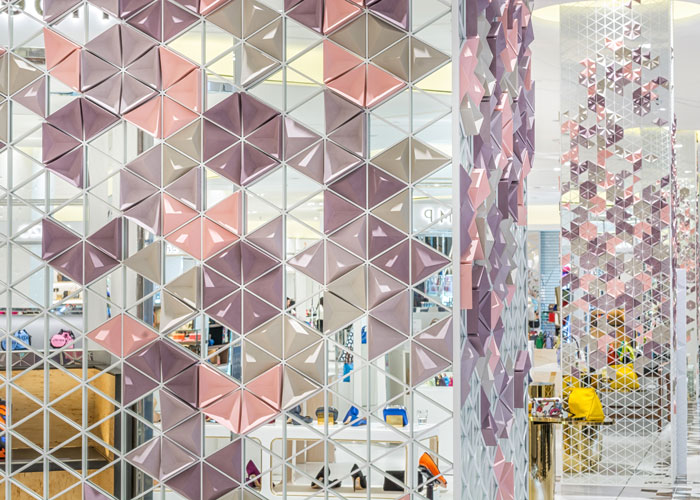 What has followed is a trail of experimentation and development that continually encompasses evermore materials, with both hand crafted techniques and digitally aided design, creating inimitable surfaces that reflect, distort, control and manipulate light. As a result, Giles Miller Studio has created acclaimed and award-winning work for some of the world’s most prestigious brand names across a variety of industries, including Harrods, Stella McCartney, Omega & Tiffanys, as well as large scale projects for lesser known clients who want something special.
