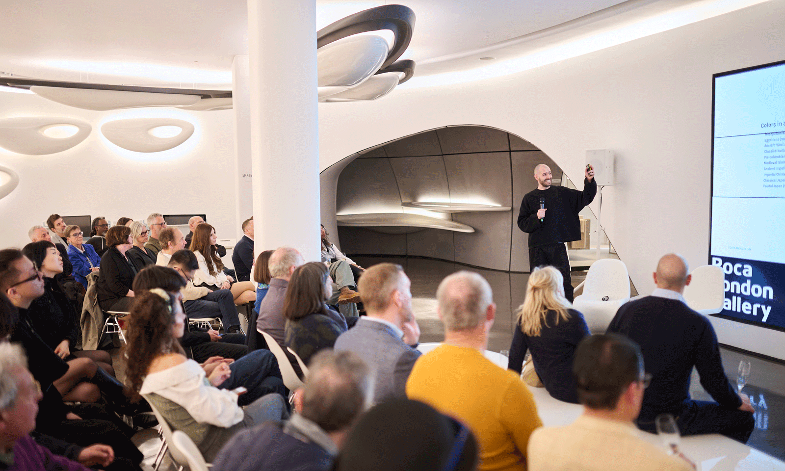 Hosted within the atmospheric setting of the gallery’s latest exhibition, the event drew an engaged audience of designers, architects, and industry professionals—all eager to explore how ancient materials and colours can inform contemporary design.