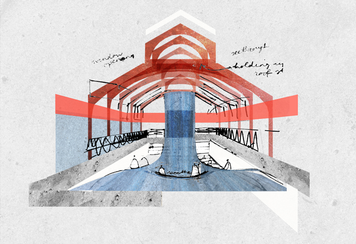 Whilst Marieke Evans from the University of Dundee reconsidered the shared public history of an abandoned Edwardian public bath in Glasgow and conceived plans for larger scale structures including an intercultural community hub called Ashore.