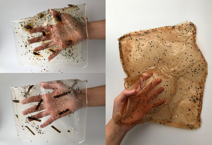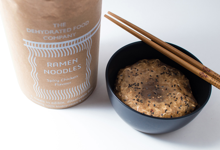 As increasingly witnessed at numerous design shows over the last couple of years, making informed and considered material choices that are either recyclable or locally sourced has also been a key focus for many students this year. Holly Grounds, a product design graduate from Ravensbourne University has opted to address the issue of plastic waste by designing an edible ramen noodle packet that dissolves in boiling water, eliminating the need for disposable, single-use plastic.