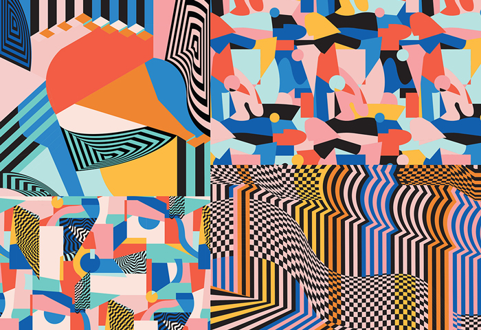 Erin Wardingham from Leeds Arts University has created a stimulating collection of printed textile designs created for the women’s sportswear market, but with the potential for diverse application. Inspiration for Graphic Colour is pulled from the mismatched compositions and distinctive geometric graphics typical of the Memphis Art Movement. Linear qualities balance the obvious colour blocking, providing a platform to exhibit a sense of movement and illusion, influenced by features of Op-Art.