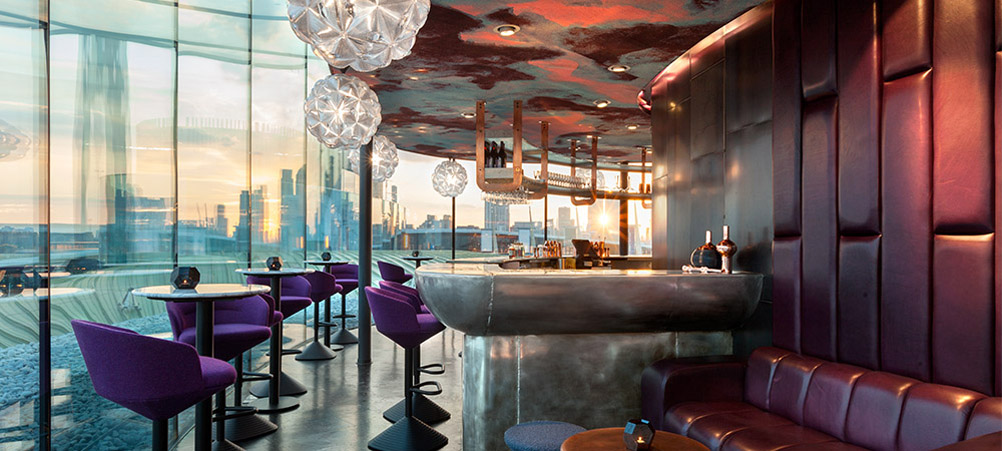 Under the creative direction of Tom Dixon, London based Design Research Studio has explored the possibilities of carpets by installing the textile flooring in the ceiling and thereby created a bar interior never seen before.