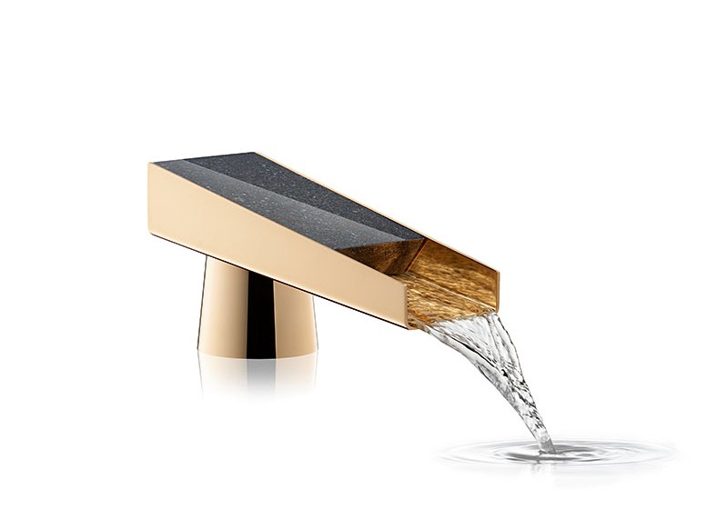 In British architect David Adjaye’s concept Ritual, water appears from under a granite inlay that is cradled by a wedge-shaped, precious metal (bronze) spout. The water, always in view, is ritualized: from source, to flow, and finally, to descent.