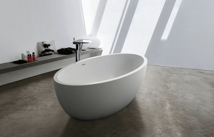 PEBBLE – has a minimalist organic design and is of a size that this freestanding bath can become the focus of most bathroom creations.