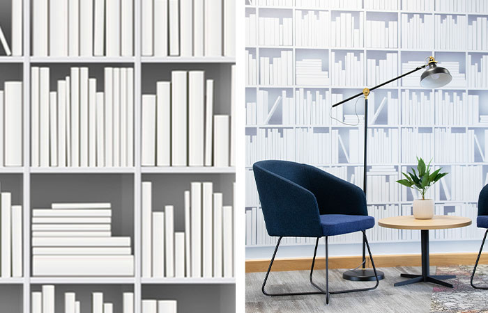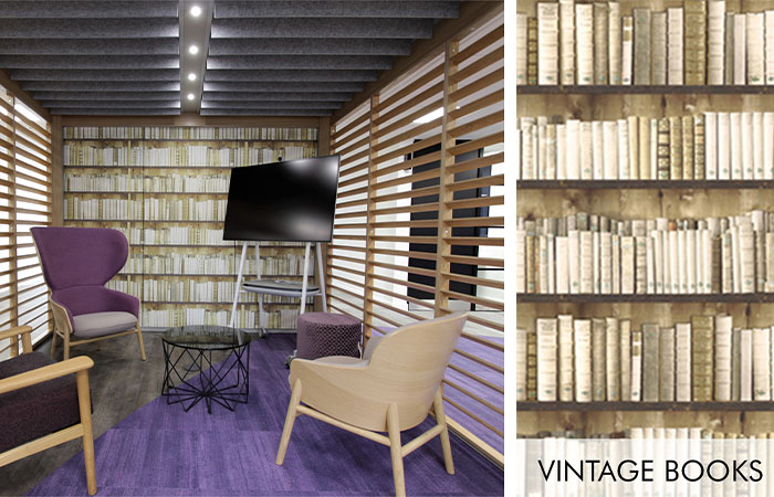 The Library zone using Tektura’s Minimal Books wallcovering