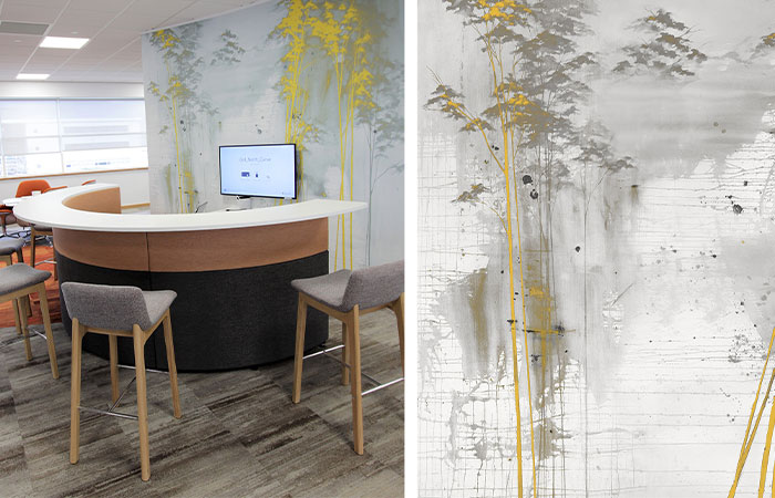Sunshine yellow or inky blue, where would you choose to work? Using Tektura’s Kata Lips Shinrin design in energising yellow and blue, the different colourways gives a clear separation of space in a cohesive scheme.