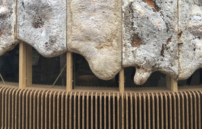 Novel as they may seem there is a clear emphasis here: biomaterials, even those derived from ‘dirty’ waste, offer viable material solutions. The pavilion organisers are keen to change the message usually attached to such progressive developments: