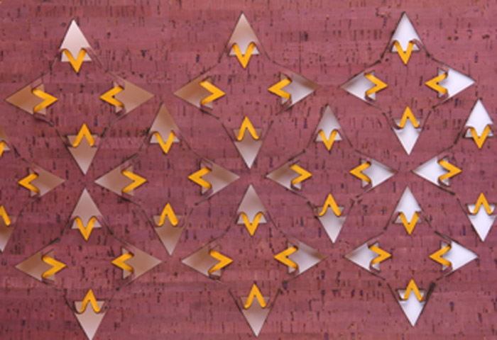 Building on her experience working with cork, the new range incorporates intricately cut laser patterns on cork fabric. “The inspiration for our designs is drawn from nature, and for this range specifically cacti and succulents. The laser cut patterns allow light to seep through, reminiscent of sunlight through trees”. Used as screening they provide seclusion but not total isolation.