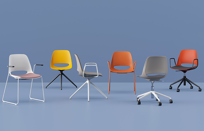 Courtesy of multiple base, seat, finish and fabric options, every one can create their own DNA. The four-leg oak base option offers added finesse, along with seven painted frame options providing a spectrum of colour possibilities to complement a wide range of interiors.
