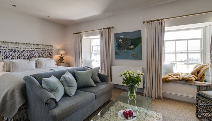 Each room is individually designed to reflect the ultimate beauty in waterside comfort and luxury. Most rooms enjoy a wonderful sea view and a number of the bedrooms have window seats where guests can look out over the harbour, with the view influencing the interiors through the use of colour and natural light.