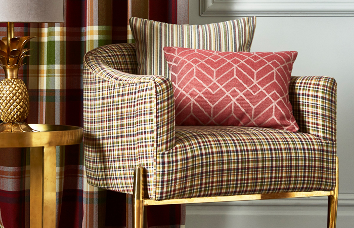 The rustic weaves add warmth into spacious bar lounges and large reception areas in cushions, curtains and accessories, with the fabrics coordinating perfectly to create an eclectic interior. Give these traditional spaces a contemporary update and pair the highland checks with geometric upholstery in our Penrose fabric, vibrant green accents and gold accessories.
