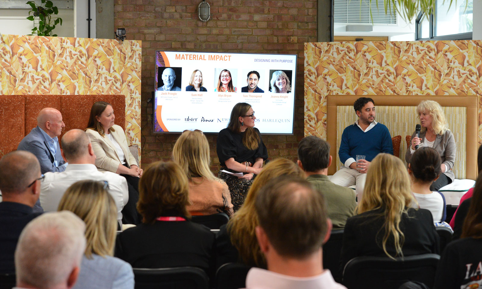 Last month, five of the UK’s leading commercial interior suppliers – Ulster Carpets, Panaz, Newmor Wallcoverings, Hypnos, and Harlequin, came together to host a timely and thought-provoking panel discussion at Ulster’s London showroom. With sustainability at the forefront of every design brief and global supply chains under scrutiny, the event placed materiality at centre stage to explore how British manufacturing is uniquely positioned to lead the next era of sustainable design.