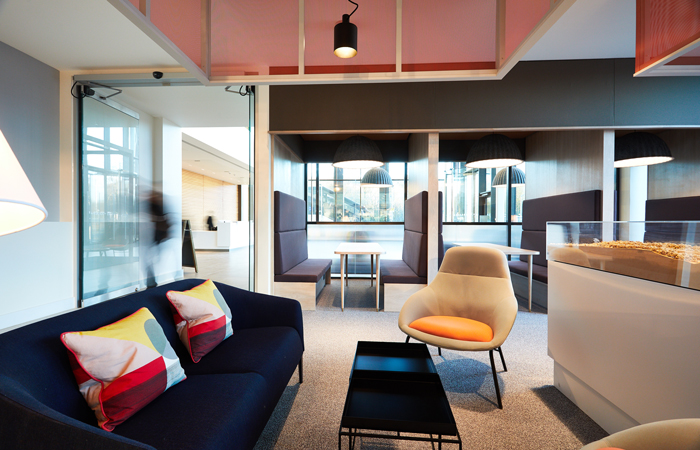 Cafés are also the places where the senses are more in play, thanks to smells coming from food prep or great quality coffee and increased visual stimulation from colours of a salad bar or the steam rising from the making a cappuccino being made. Sounds are different here too, for those cafés that play a music soundtrack for example. Otherwise there’s the noise of people chatting or laughing, without the self-consciousness that comes from being in the quieter areas of the office. Tactile fabrics and upbeat colours appeal to the eye and to our sense of touch and all these elements combine to relax and revive people, temporarily disassociating them from the stress of their desks, computer screens and the parameters of their role.