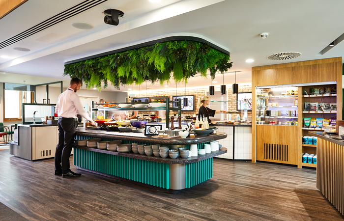 When it comes to strengthening a brand, cafés aren’t places for heavy-handed signage (apart from the branding of an external operator) or visual clutter. Brand loyalty is a subtler affair in a good workplace café, which communicates in a very simple and effective way that your employer cares about you and is looking after your wellbeing needs directly. The productivity benefits, meanwhile, of offering really fresh and nutritious food, should by now be obvious to everyone.