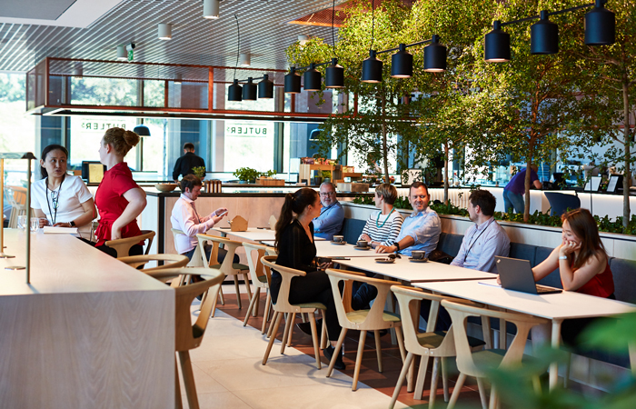 They’re places people naturally congregate in and socialise and they form a sense of community in a completely different way from other parts of a workspace, where you liaise with people either in your team or with a more specific mission – with HR or accounts for example. The chance encounters and interesting conversations people wouldn’t have had in other ways increase a café’s possibilities for encouraging innovation and collaboration.