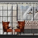 Located at the ground floor level, the Vintry Kitchen celebrates the vintner’s guild of wine merchants. It offers a relaxed easy style of dining, with textured cork effect walls, feature penny tile mosaics, and high button backed banquettes in buff leather placed alongside marble topped tables on a herringbone tile floor. The clever combination of plantation shutters with angled mirrors is used to throw natural illumination across the space from the roof light above. Ambient wall lights and pendants are carefully balanced to create a more intimate setting for evening guests. A communal table sits next to exposed oak barrels displaying the range of wines offered on the tasting menu.