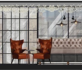 In contrast to both the Mercer Bar & Vintry Kitchen, the opulent basement speakeasy bar, Do Not Disturb, revels in its freedom from architectural intervention, and makes a feature of the lack of windows and roof lights. Instead we opted to accentuate the darkness. The DND bar is heavily influenced by the Art Deco period; ceilings are lined with decorative mouldings and trims are painted dark claret to tie in with the curved Deco-inspired lounge banquettes. Vintage lights and curiosities are wrapped in low-level lighting to set the mood.