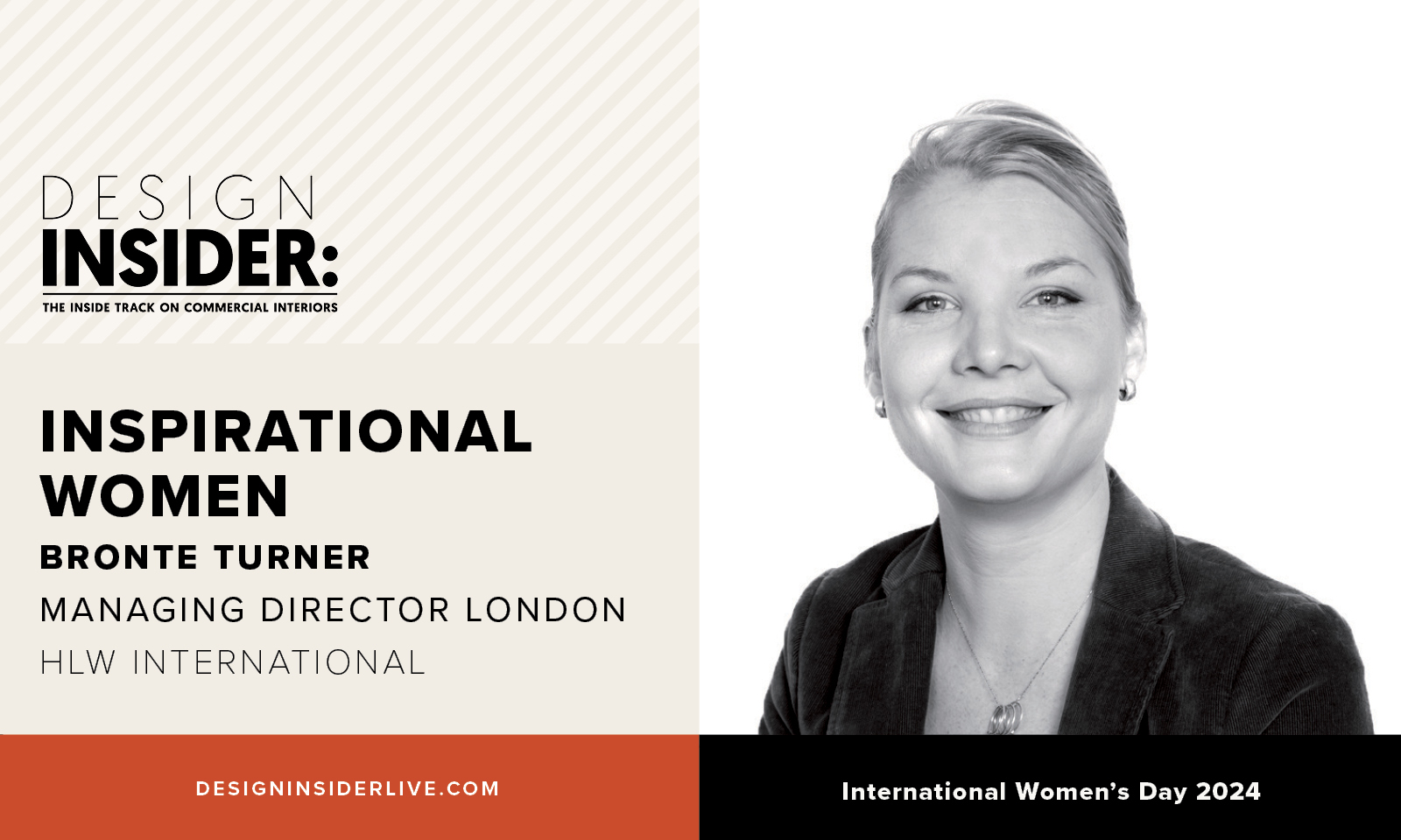 Bronte Turner, Managing Director London at HLW International, is one of our Inspirational Women. In our conversation, we delve into how Bronte interprets #InspireInclusion within the context of her work and the broader commercial interiors sector. We explore her personal experiences, the success stories that have marked her journey, and the collective strides we can make toward a more inclusive industry. Moreover, we discover the women who have inspired her and how she, in turn, serves as a beacon of inspiration for others.