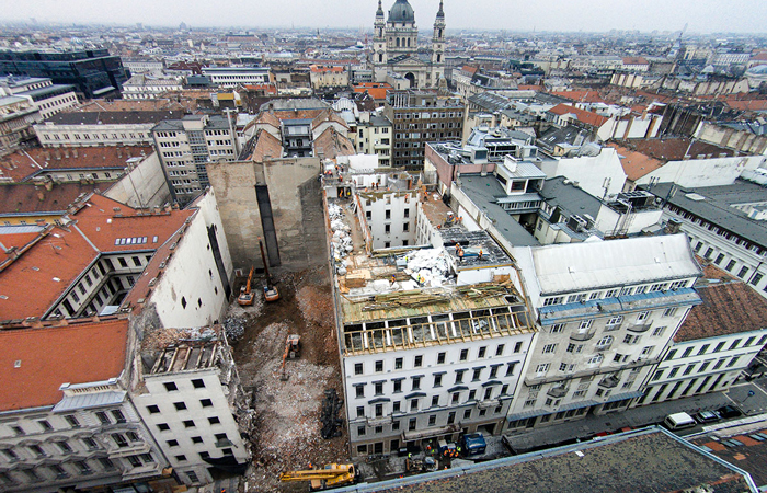 Budapest is a city of courtyards and passageways. The contemporary expression of the new building at Nador 15 is designed to be in sympathetic conversation with its neighbours. The limestone façade is locally sourced from the same quarry as most of the historic buildings in the city. This is the first new building to be built in recent times in this historically protected context.