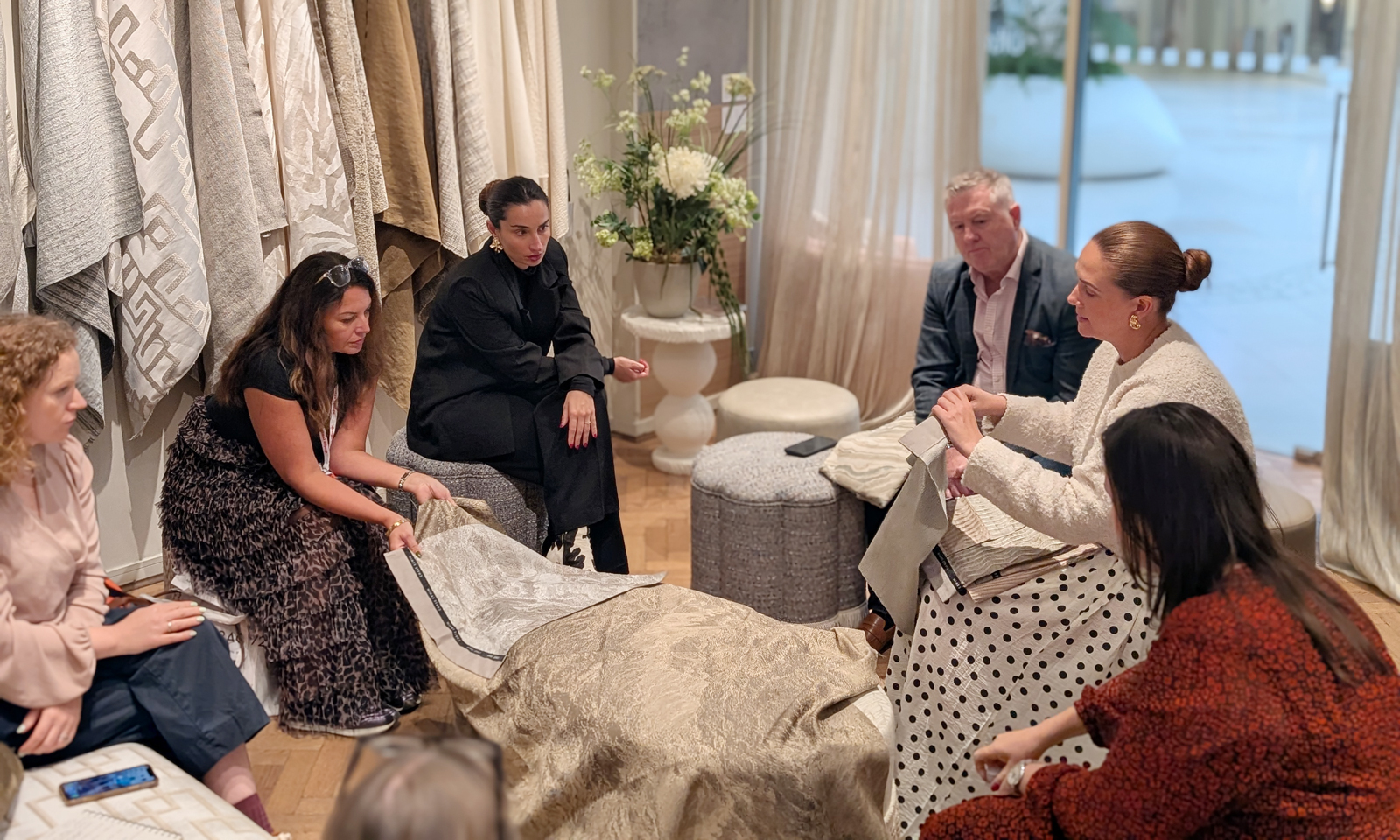 An example shared during the session illustrated this process in action. For a Monaco hotel project, a silk-rich Chase Erwin drapery fabric was reinterpreted in Trevira CS, maintaining its fluidity and texture while meeting FR standards, and achieving a 50% cost reduction. The team referred to this approach as “value engineering,” not as a compromise, but as an intelligent collaboration between design and manufacturing to deliver creative results within budget.
