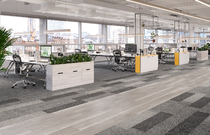 Colour Construct also combines effortlessly with Shaw Contract’s LVT collections. This means that different textures, designs and colours can be used to create walkways and distinctive zones, providing a simple way to configure spaces, that is also very flexible.