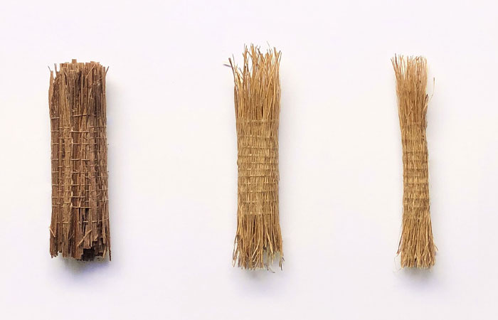 In part, the Mabe Project seeks to turn the negative narrative of Japanese Knotweed on its head. This is no mean feat when you consider that the weed is considered to be one of Europe’s most invasive, persistent and damaging, but through careful experimentation across the different seasons she has exploited many of its properties to create numerous material solutions. The results include woven and non-woven textiles, natural pigments and solid surfaces, all of which are made from separate elements of what is ultimately an unwanted, naturally occurring waste material.