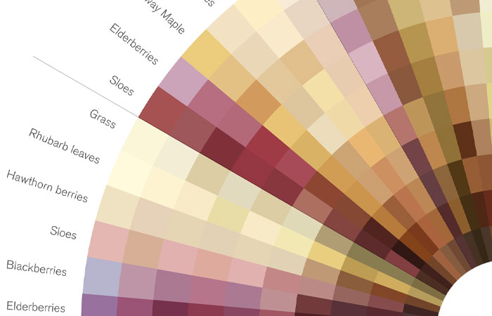 They include Hannah Elisabeth Jones and her project Lliw Lleol, or Living Colour, which seeks to elevate the value of locally sourced natural colour. Foraging abundant plants and weeds such as sloe berries and grass over the course of the academic year she created organic colours directly from nature.