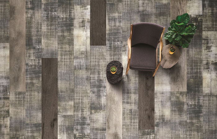 Rootwork is a traditional, artisanal wood design. It can be used alone to create a wood effect floor, but with all of the benefits of LVT – such as reduced sound insulation and ease of installation and replacement for maintenance. Or more creatively, combined with Change Agent carpet planks for dramatic effect and zoning of areas.