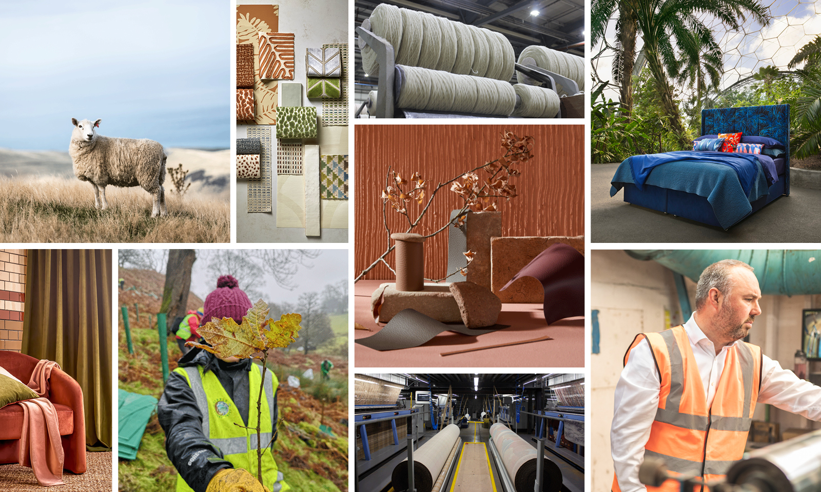 The majority of our wool is sourced from British and Irish farmers and processed in Yorkshire. Our looms are built in the North East of England, and our manufacturing operations take place in Northern Ireland. This comprehensive control enables us to provide detailed and accurate information regarding all materials and processes, aiding specifiers in meeting sustainability targets, safety and quality regulations, and brand standards.