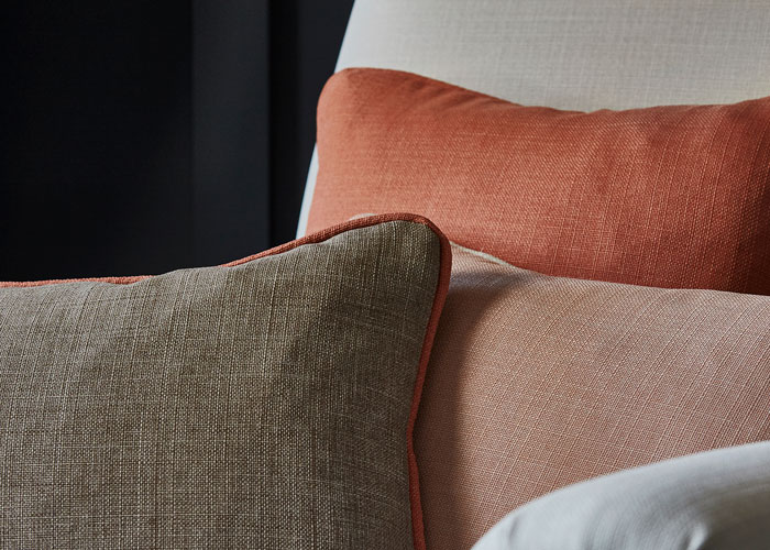 The colour palette offers a cosy, easy living feel and layering different shades, from earthy pink to terracotta in textiles and accessories makes for a sophisticated, yet snug setting.