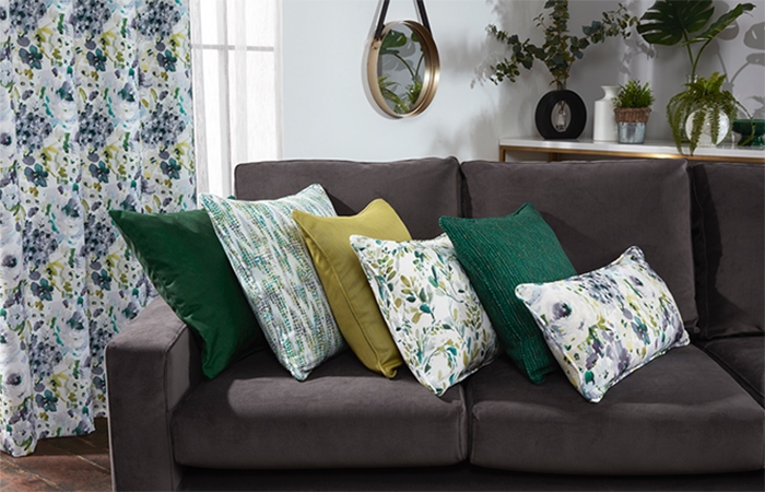 FLORIS as the main floral bursting with summer delight mixes calmly with AMILIE; another organic inspired easy to use leaf. FINESSE and MONSOON, whilst multi-coloured, add certain calmness and contrast with zig zag lines and subtle drops. MARQUISE on the other hand punctuates with notes of formal trellis work and geometric clarity.