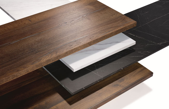 34 carefully chosen decors, three thickness and two profiles make up this sophisticated collection of worktops. Realistic reproductions in 16 mm, 25 mm and 38 mm include oak, marble, stone and granite, offering a low maintenance, cost effective alternative to solid surfaces.
