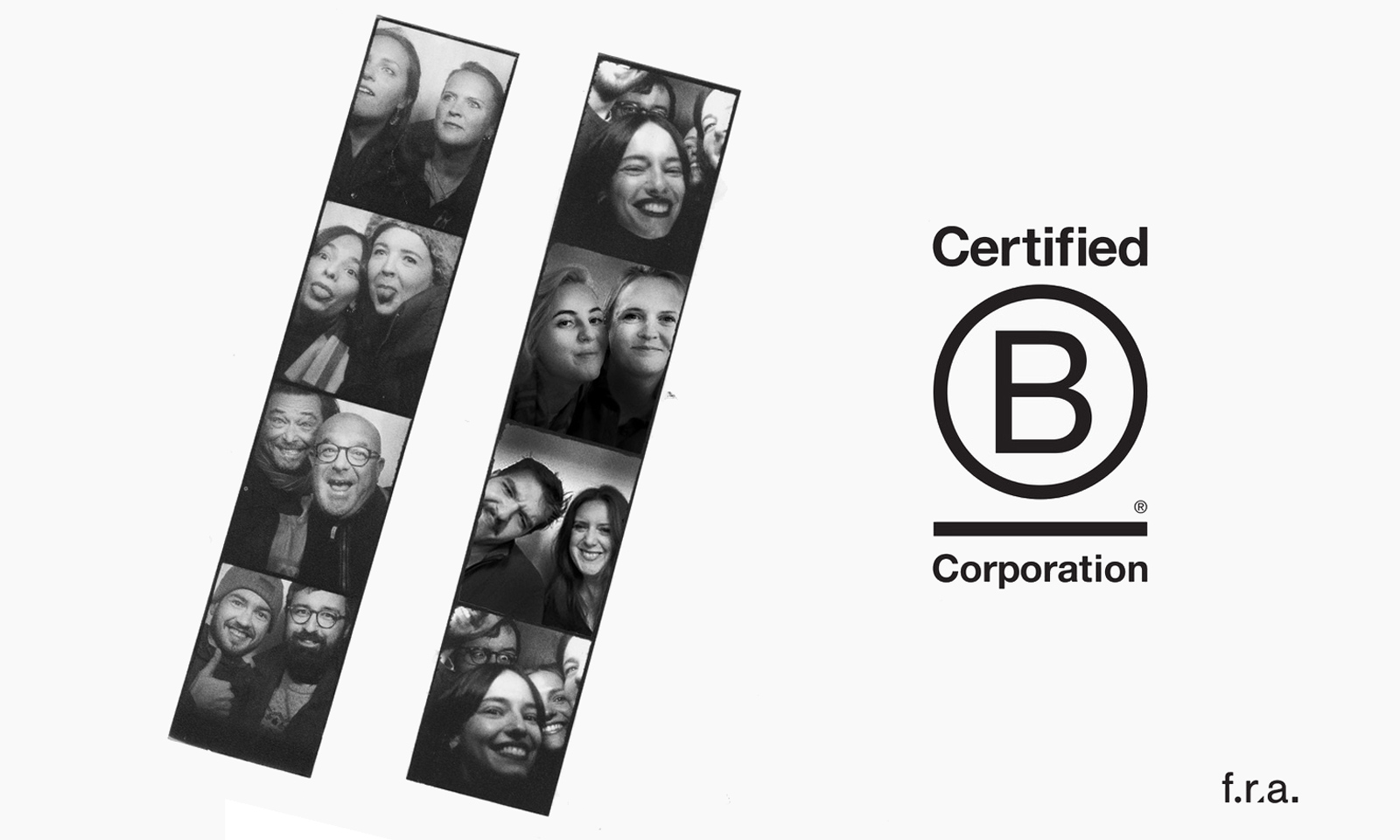 Verified by B Lab, the not-for-profit behind the B Corp movement, the certification confirms that f.r.a. meets high standards of social and environmental performance, transparency and accountability.