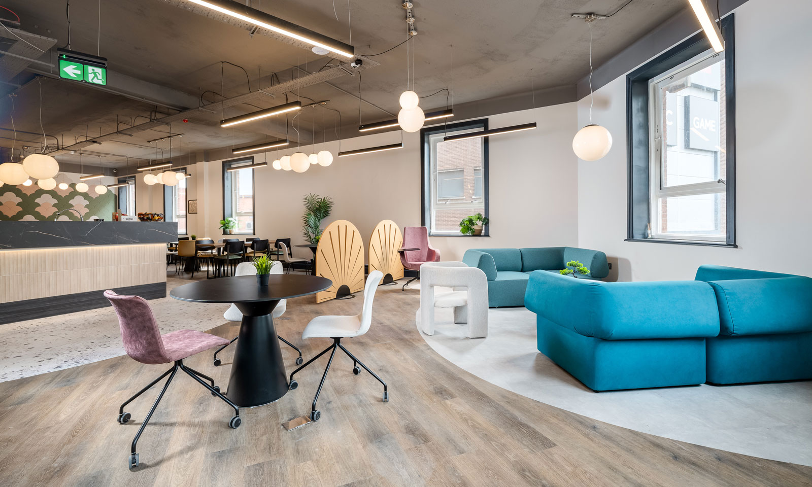 Flexworks features a range of spaces to suit everyone from freelancers to small businesses and brings a fresh, flexible co-working environment to the city, with a refurbishment that’s transformed four previously vacant office floors into shared workspace and private offices. With a focus on flexibility, the environment is designed to adapt seamlessly for different needs, whether meetings, workshops, or social events and the new interior design from Maria Hatton ensures that it’s an appealing space where doing business becomes a pleasure.