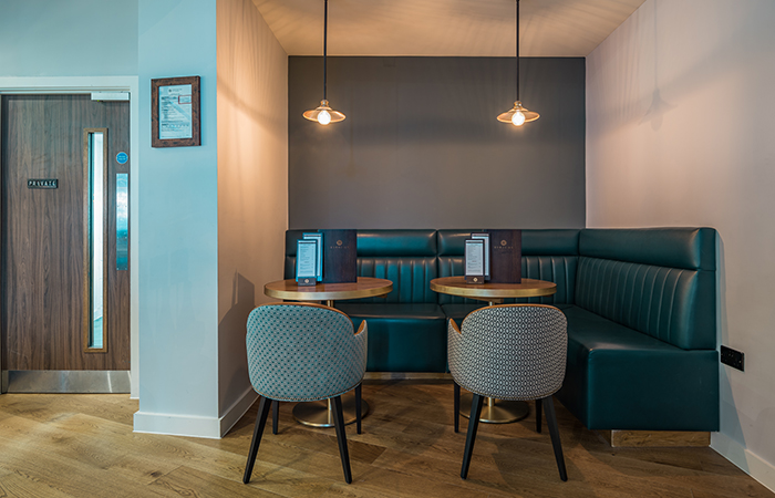 Furniture Fusion has supplied furniture throughout the property, from marble side tables and upholstered chairs in the bedrooms to bar stools, bespoke dining tables, dining chairs and high tables in the restaurant.