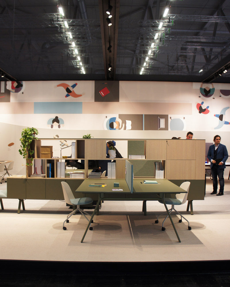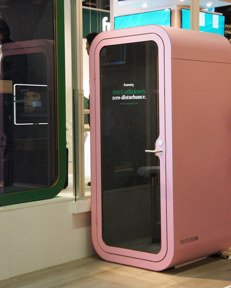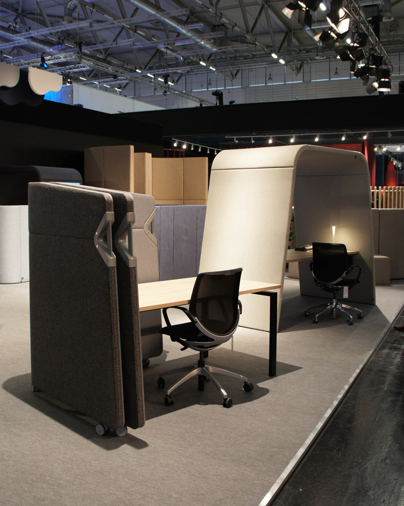 Contemporary, vibrant and welcoming stands displayed a huge variety of furniture, from desking and storage through to upholstered seating, with four key trends: Sit-stand desks, acoustic solutions, modular seating systems and the most dominant of all – the pod!