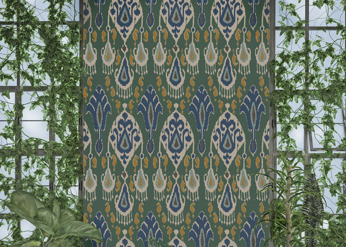 In the 19th century, the Silk Road desert oases of Bokhara, Samarkand and Kashgar were famous for their fine silk ikats. Traditionally rich and vibrant in colour to complement the bold patterns of the ikat design, our Bokhara wallpaper palette also includes the softer hues of blush and sand to add a different dimension to the classic ikat colours.