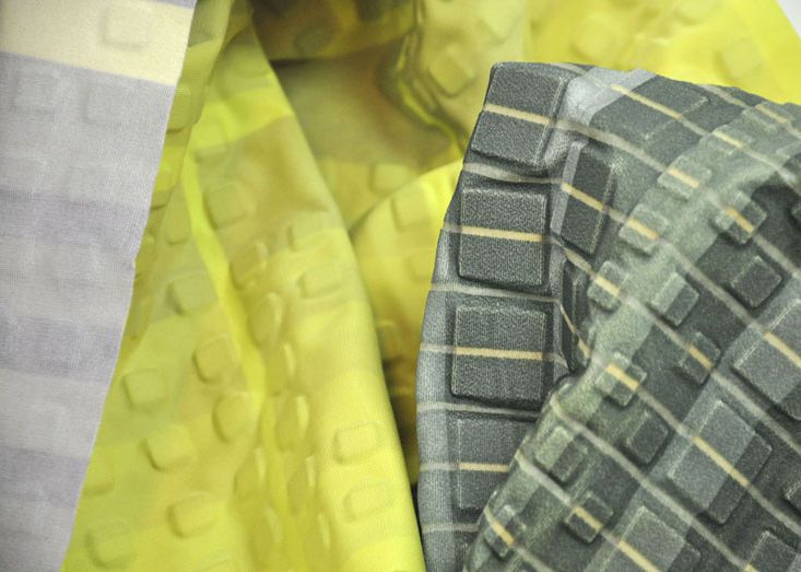 Context and narrative are often what sets apart a collection from the rest and the work of Erin McQuarrie has interesting origins, as well as some innovative surface solutions. Homage to the Studio takes Charles Rennie Mackintosh’s Glasgow School of Art building, where she studied, as its starting point. Responding to the damaged building, post first fire, as well as the impact that Japanese art and design had on Mackintosh’s work, the collection is a marriage between hand craft and digital techniques, considering the juxtaposition of varying materials and processes to create interesting colour harmonies and intriguing tactile qualities inspired by the remnants of the affected architecture.