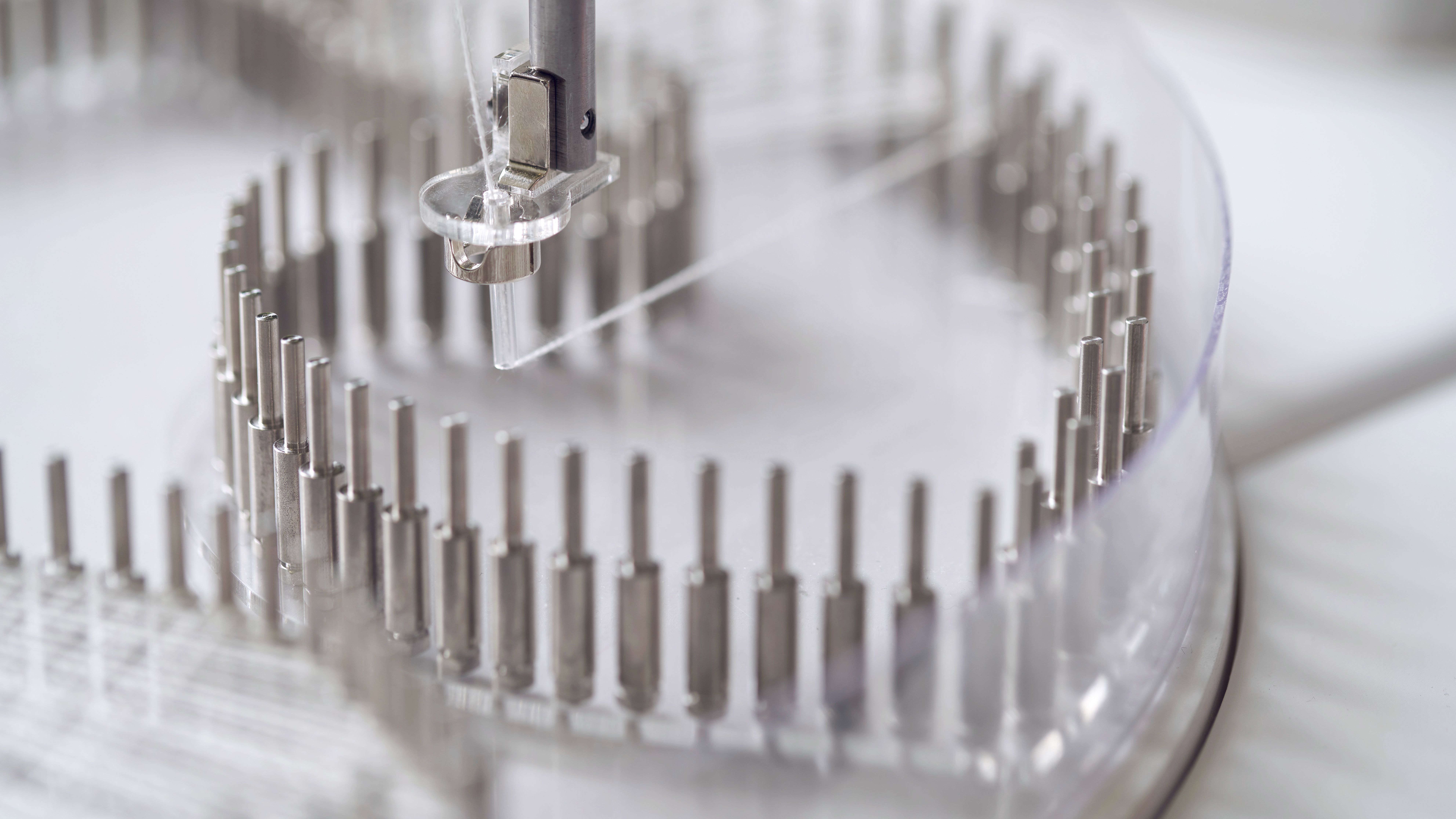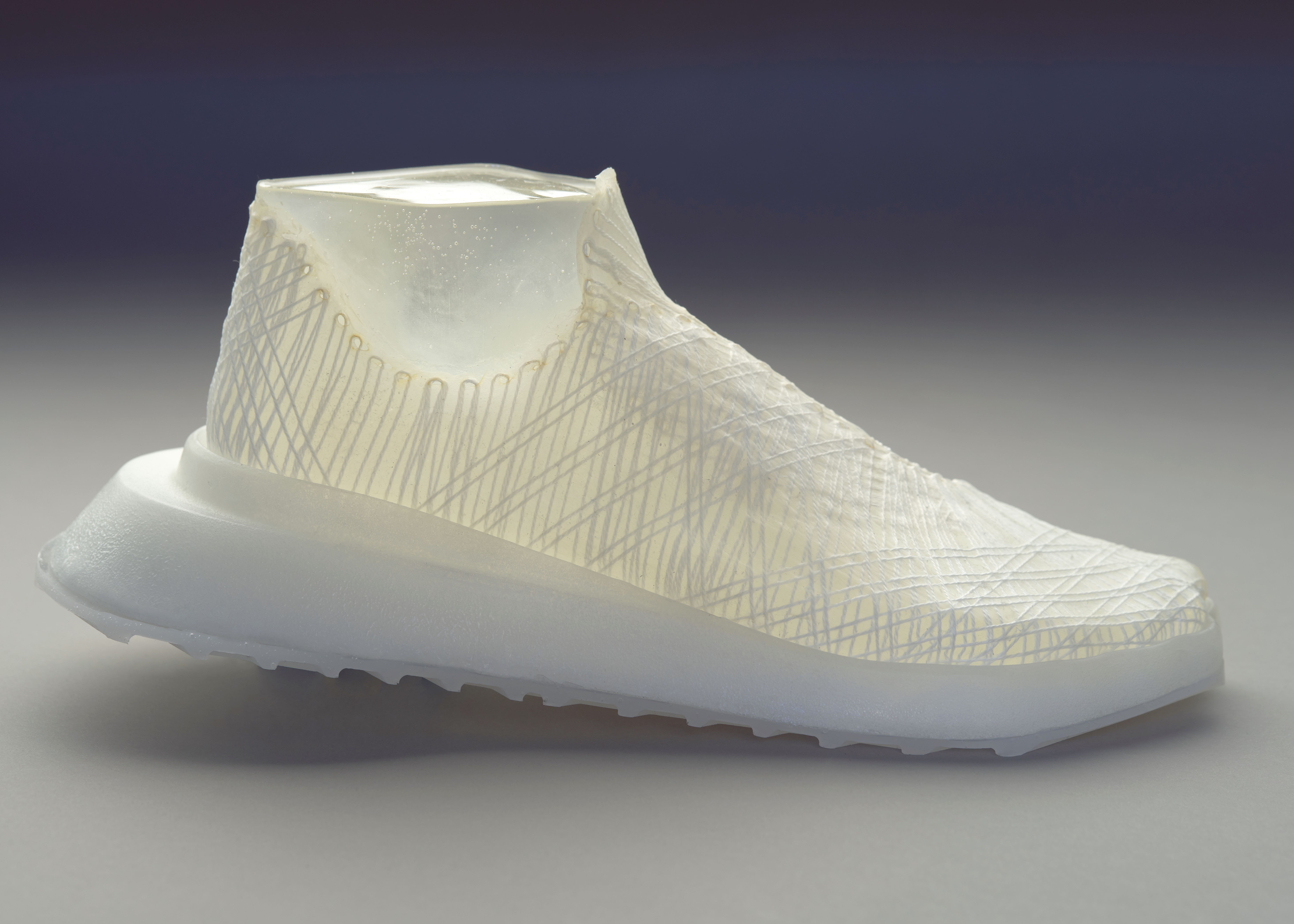 Merging modern industrial textile practice with future biotech principles she proposes an alternate future, “by manipulating the growing process of k. rhaeticus bacteria, I have developed a new form of ‘microbial weaving’, working with microbes like bacteria and yeast to optimize the natural properties of bacterial cellulose and create a new category of hybrid materials that are strong, lightweight and potentially customizable to a nanoscale.” The result of this ‘Bio-facture’ is a shoe for which she ‘grew’ the upper in a single piece, with no sewing and one continuous yarn held into place by the cellulose produced by the bacteria.