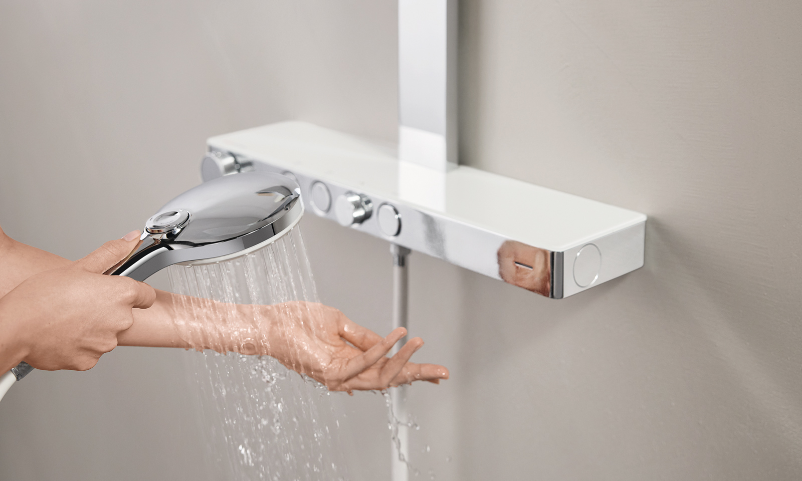 The hand shower enables the individualisation of the experience with three different spray variants: Rain, Active Massage—a pulsating spray—and Rain+, which blends air and water for pure relaxation of body and soul. The different spray patterns and the head and hand showers are effortlessly orchestrated using the SmartControl thermostat, which facilitates seamless adjustments of temperature and flow. It enables users to increase the volume from Eco to Full Flow, or to dial it down, with a simple twist of the button, and even allows them to save personal settings for future indulgence.