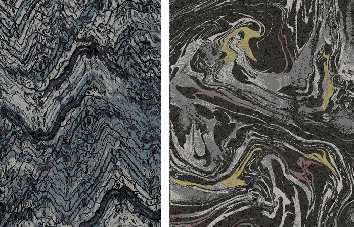 In combinations of slate grey and ocean blue to lava red and desert sand, the designs have a wonderful abstract effect that will empower the interiors of hospitality and leisure locations with a striking base for interior schemes.