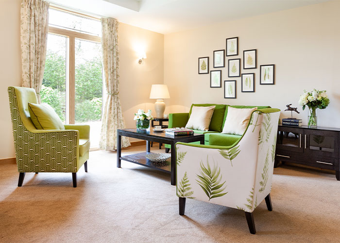 For example, a ‘regular’ fabric design which can commonly be found in pattern book may look fantastic for a domestic setting however, for those living with dementia, the design could be a source of agitation or stress due to overstimulation. Introducing subtle patterns and colourway which contract to other surroundings will help create a relaxing neutral scheme with contrasting pattern soft furnishing highlights such as cushions, upholstery and curtains.