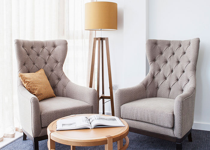 - High-back furniture – This offers lumbar support for the shoulders, back, and neck that one wouldn’t receive from low-backed chairs.