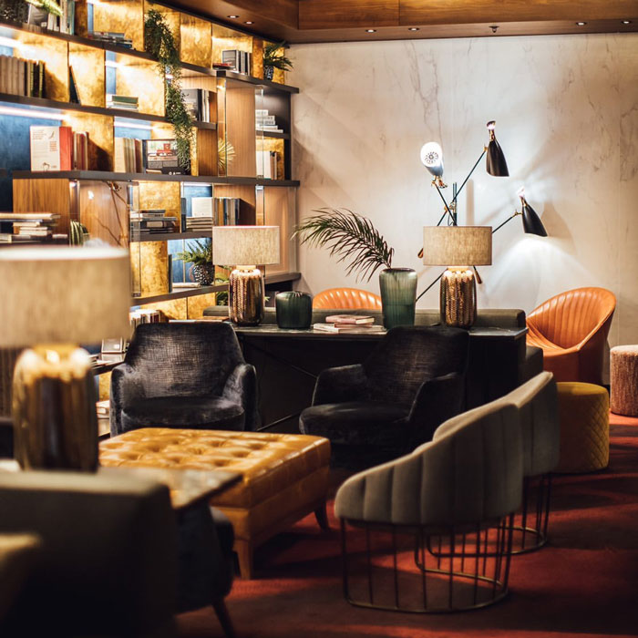 Specified by interior designer Anemone Studio, some of Heathfield & Co’s bestselling table lamps in a palette of bronze, brown and gold feature throughout the hotels public spaces, creating highlights across the open plan bar area and library.