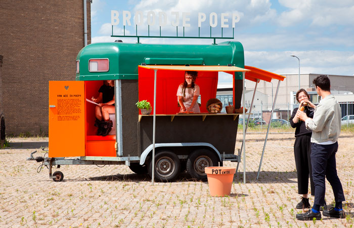 Once translated from Dutch to English BROODJE POEP or SHIT SANDWICH; a project by Design Eindhoven Graduate Fides Lapidaire, doesn’t whet one’s appetite. But the project does offer edible sustenance from organically grown food, although as the title suggests, its origins are neither conventional nor an easy sell. Excrement is usually disposed of as quickly as possible, and yet is widely accepted as a fertilizer for plants in the form of manure, so why not use human excrement? In the near future we may well find ourselves eating a tasty sandwich from a food truck (equipped with dry toilet,) the ingredients of which have been grown with the aid of human compost. Returning the nutrients and micro-organisms from our excrements to the soil is a centuries-old technique and one that may well be more economically beneficial than using modern fertilisers. It’s certainly food for thought.