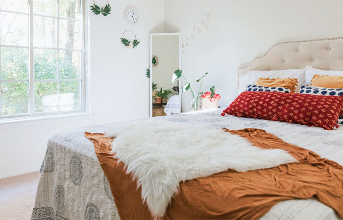 Allowing natural light to spill into a room can really help to open it up and gives the impression of space. Think about adding a skylight if your apartment or master bedroom allow. If your room doesn’t come with a view, don’t panic, simply leave windows uncovered and add colourful pot plants to draw the eye and add depth.